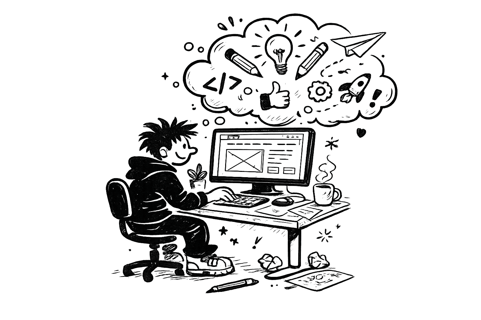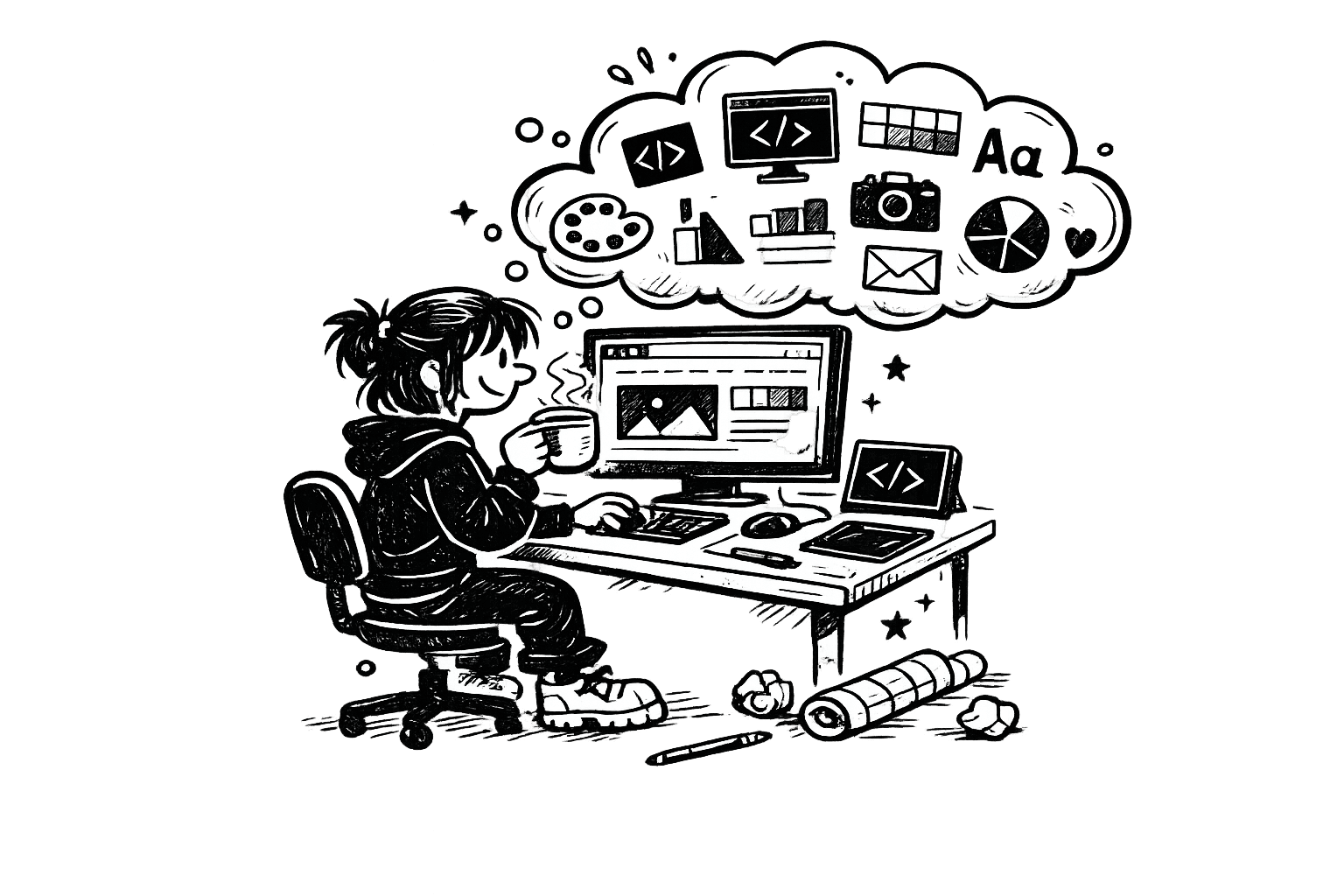 We started at a kitchen table with coffee, chaos, and a shared love for bold ideas. Now we’re a small team doing big things-designing, Developing, SEO and creating work that actually makes people feel something. No fluff, no fuss, just fun, friendly, scroll-stopping creativity.
